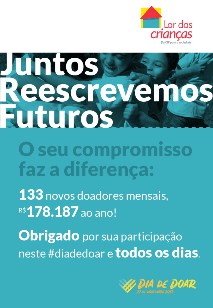 Você conhece o Dia de Doar? Lar das Crianças da CIP se mobiliza para participar da campanha