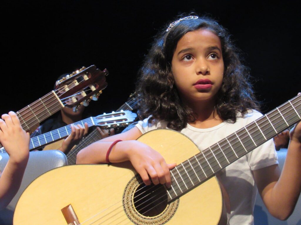 Maestro Yeruham Scharovsky e jovens da Camerata de Violões do Lar das Crianças da CIP