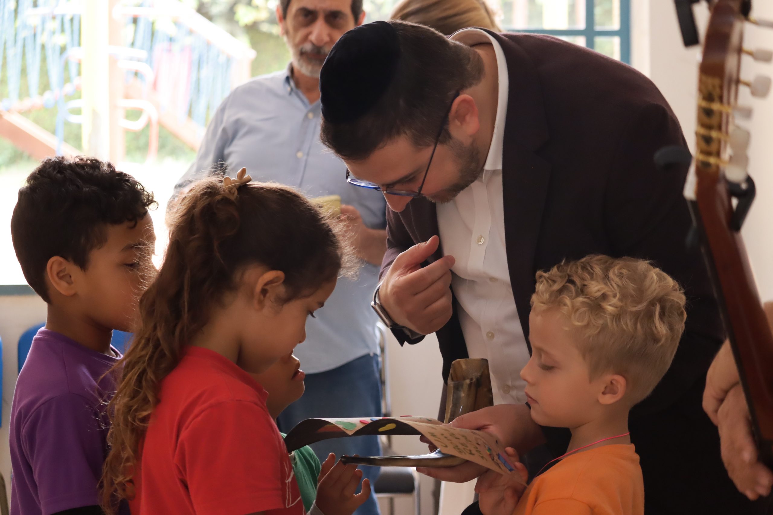A atividade incluiu momentos com músicas tradicionais judaicas, e Gamerman ainda mostrou como tocar o shofar, instrumento muito utilizado em celebrações feito com chifre de carneiro.